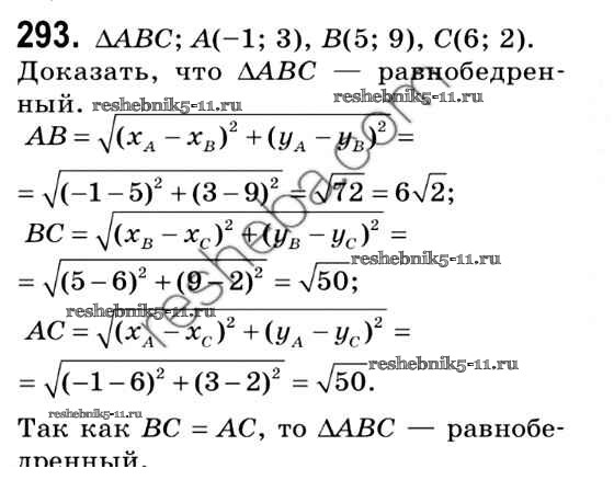 Готовая домашняя работа с ответами по Геометрии за 9 класс Мерзляк, Полонский, Якир Учебник Вентана-граф 2016 ФГОС - Задачи 293