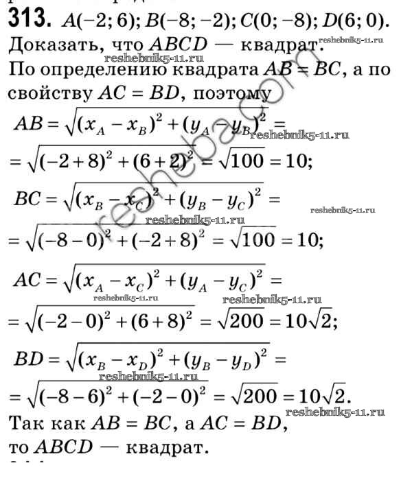 Готовая домашняя работа с ответами по Геометрии за 9 класс Мерзляк, Полонский, Якир Учебник Вентана-граф 2016 ФГОС - Задачи 313