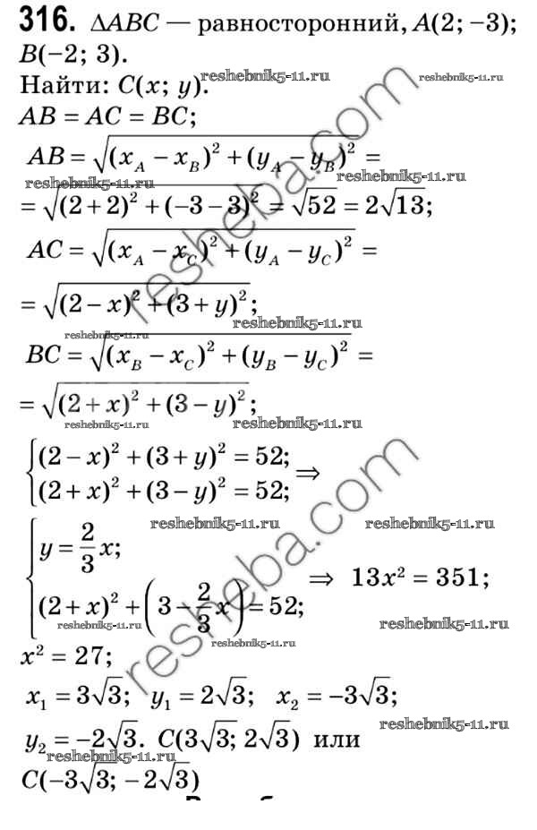 Готовая домашняя работа с ответами по Геометрии за 9 класс Мерзляк, Полонский, Якир Учебник Вентана-граф 2016 ФГОС - Задачи 316
