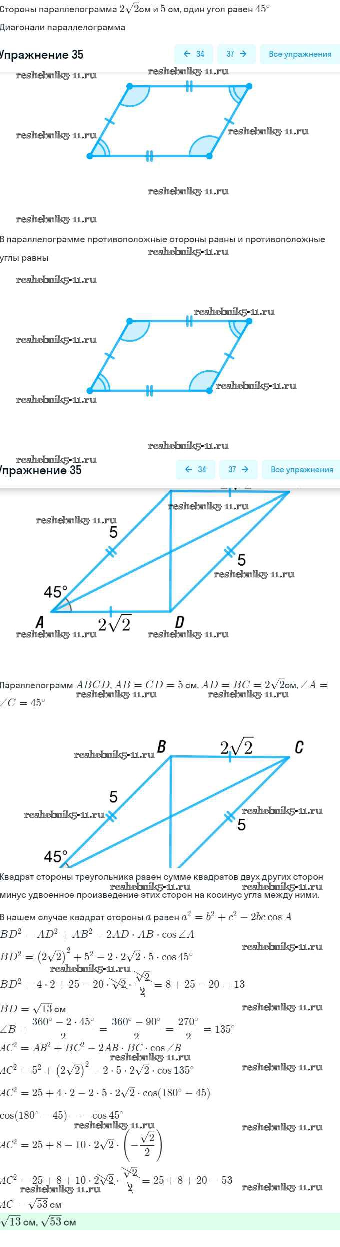 Готовая домашняя работа с ответами по Геометрии за 9 класс Мерзляк, Полонский, Якир Учебник Вентана-граф 2016 ФГОС - Задачи 35