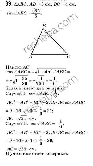 Готовая домашняя работа с ответами по Геометрии за 9 класс Мерзляк, Полонский, Якир Учебник Вентана-граф 2016 ФГОС - Задачи 39