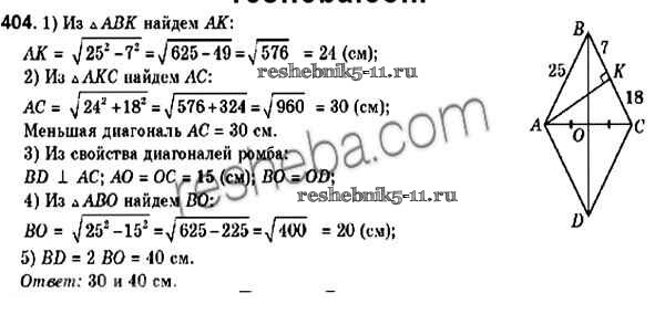 Готовая домашняя работа с ответами по Геометрии за 9 класс Мерзляк, Полонский, Якир Учебник Вентана-граф 2016 ФГОС - Задачи 404