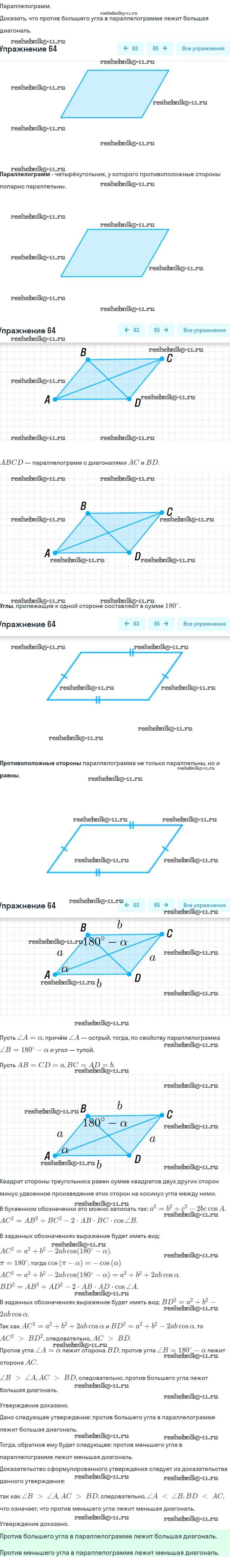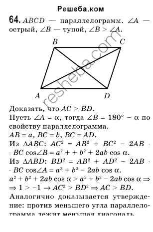 Готовая домашняя работа с ответами по Геометрии за 9 класс Мерзляк, Полонский, Якир Учебник Вентана-граф 2016 ФГОС - Задачи 64
