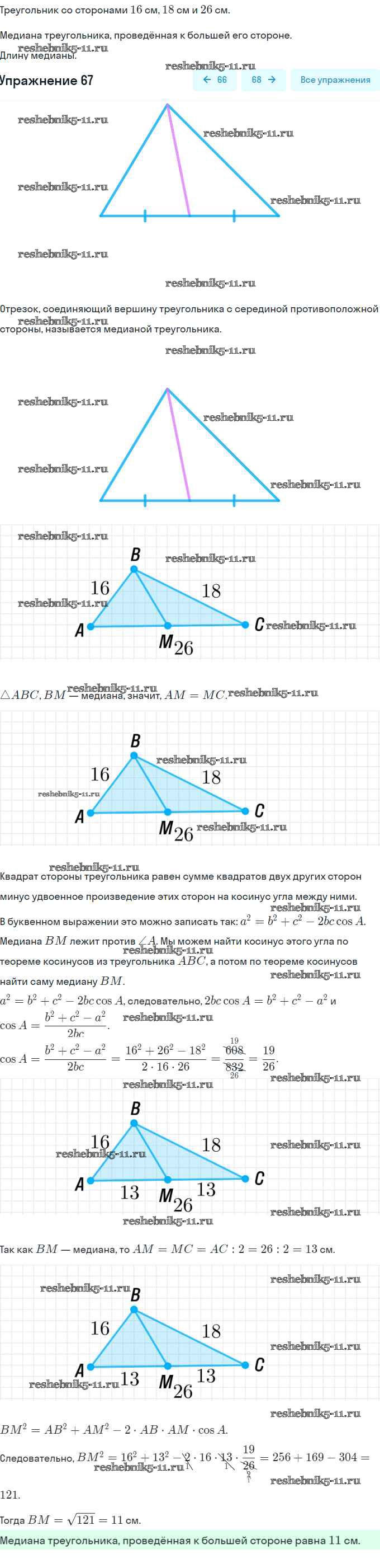 Готовая домашняя работа с ответами по Геометрии за 9 класс Мерзляк, Полонский, Якир Учебник Вентана-граф 2016 ФГОС - Задачи 67