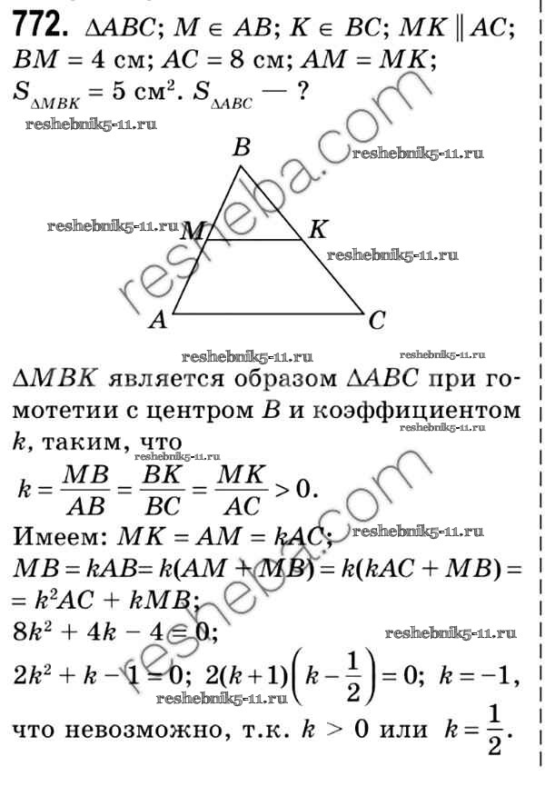 Геометрия за 9 класс Мерзляк Учебник Вентана-граф задача 772