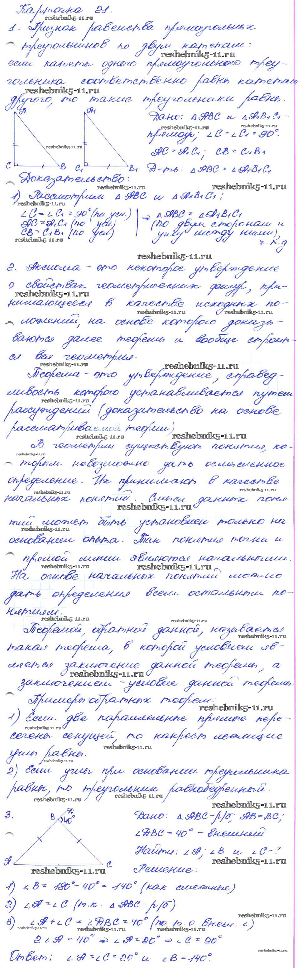 Готовая домашняя работа с ответами по Геометрии за 7, 8, 9 класс Иченская Самостоятельные и контрольные работы Просвещение 2017 ФГОС - Итоговый зачёт 21