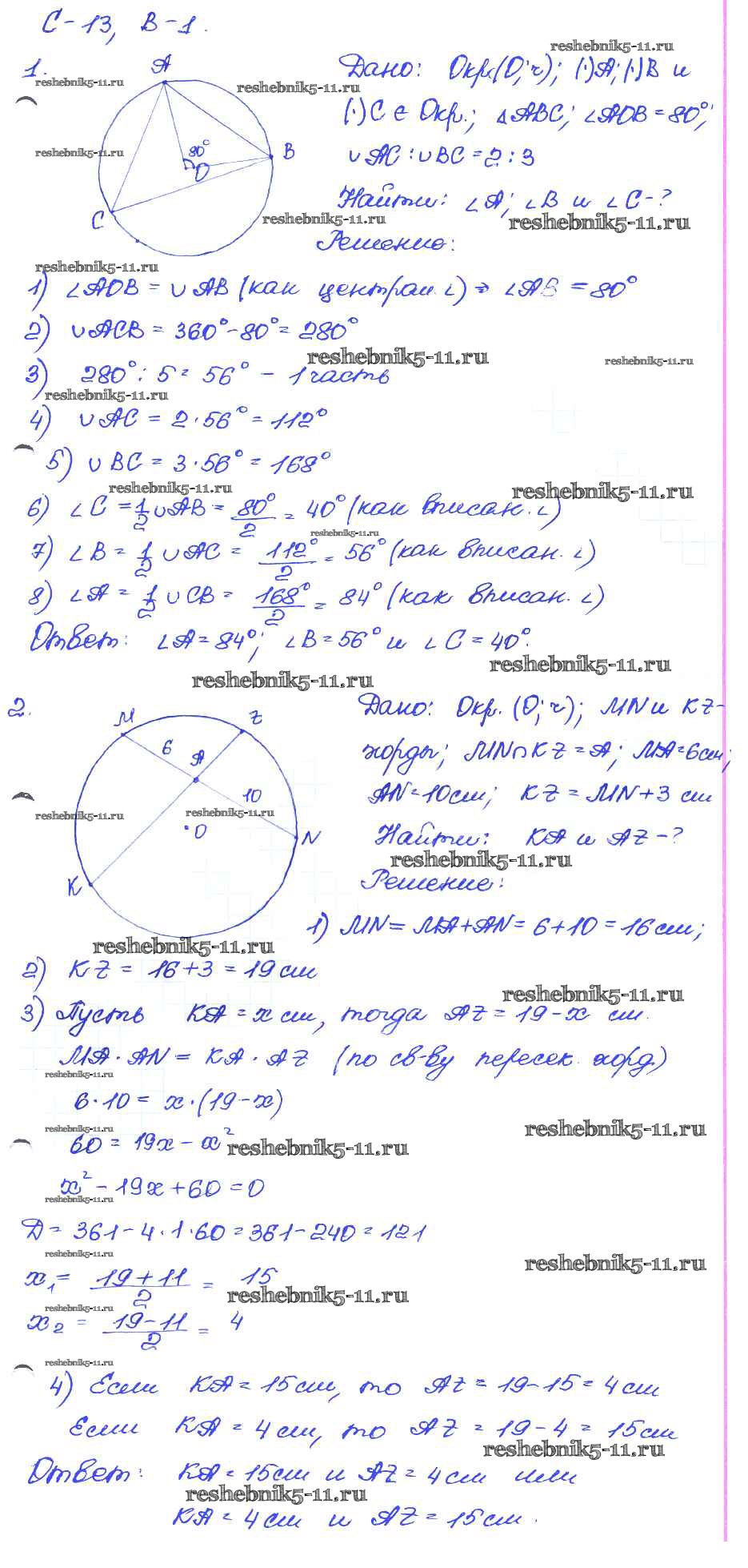 Готовая домашняя работа с ответами по Геометрии за 7, 8, 9 класс Иченская Самостоятельные и контрольные работы Просвещение 2017 ФГОС - СР-13. Варианты 1