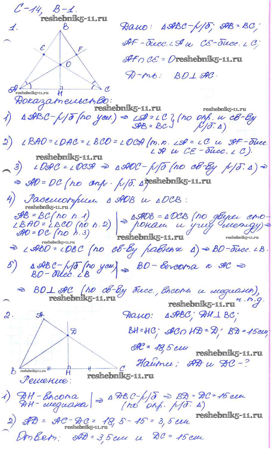 Геометрия за 7-9 класс Иченская Самостоятельные и контрольные работы Просвещение ср-14. вариант 1
