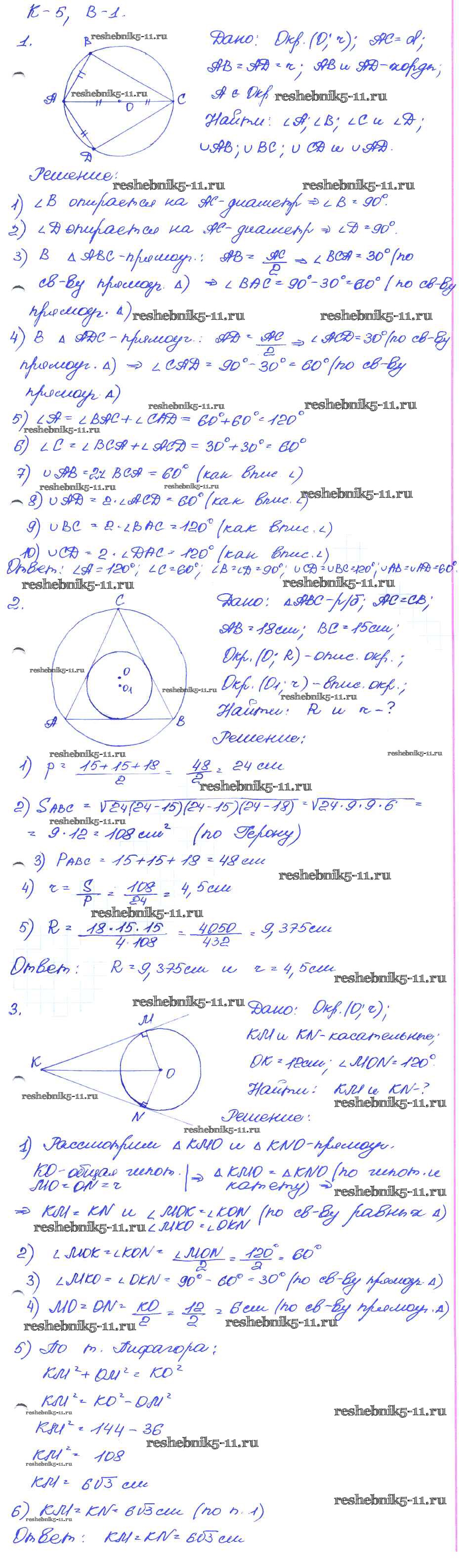 Готовая домашняя работа с ответами по Геометрии за 7, 8, 9 класс Иченская Самостоятельные и контрольные работы Просвещение 2017 ФГОС - КР-5. Варианты 1