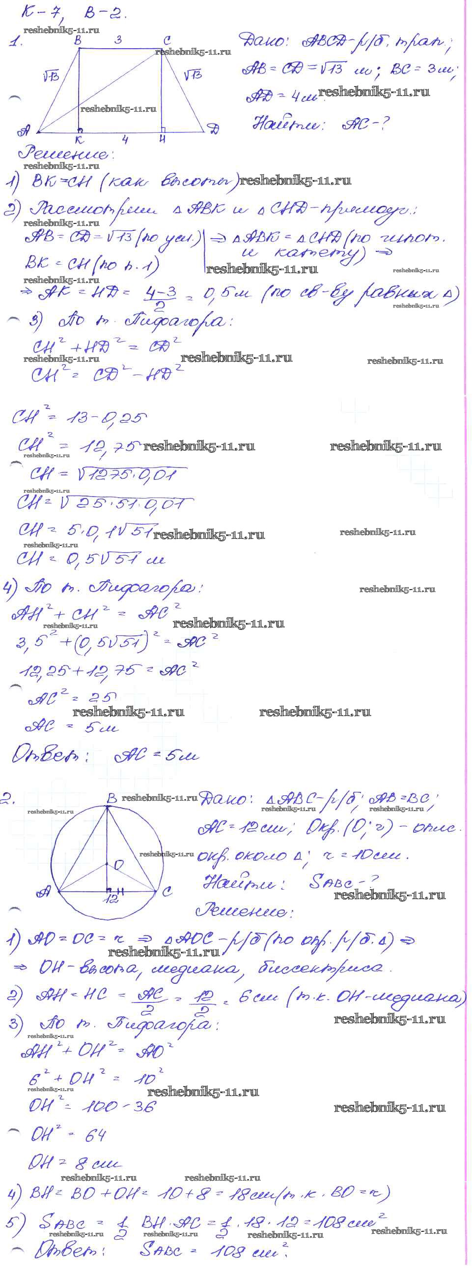 Готовая домашняя работа с ответами по Геометрии за 7, 8, 9 класс Иченская Самостоятельные и контрольные работы Просвещение 2017 ФГОС - КР-7. Варианты 2