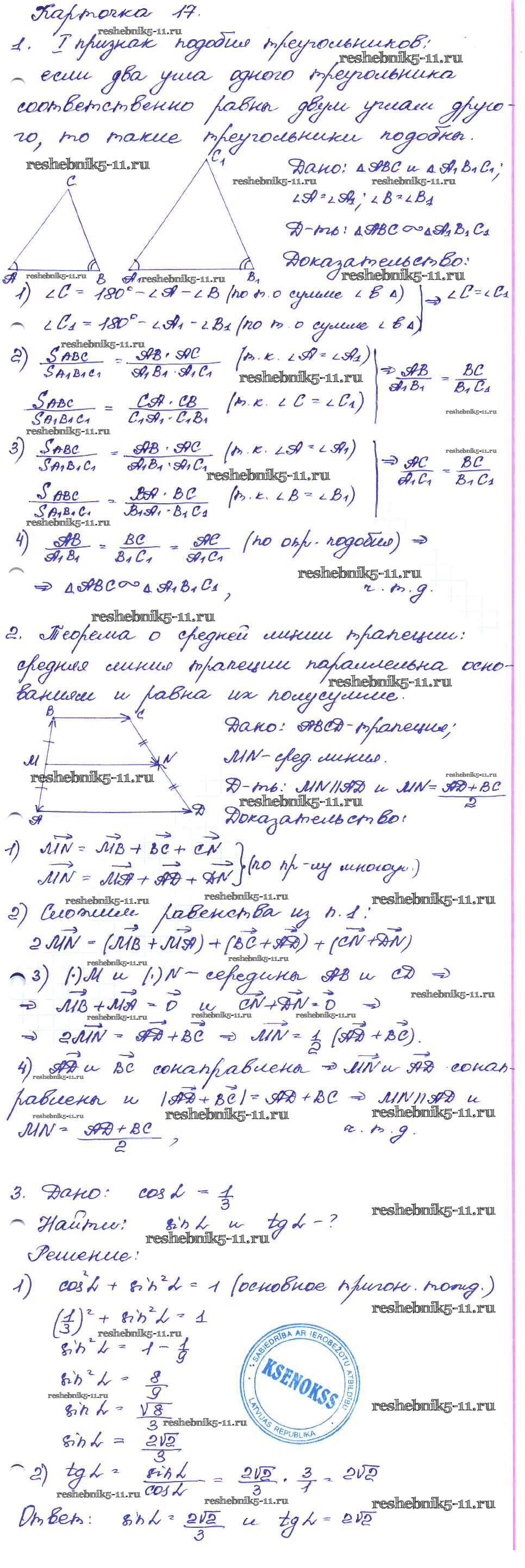 Готовая домашняя работа с ответами по Геометрии за 7, 8, 9 класс Иченская Самостоятельные и контрольные работы Просвещение 2017 ФГОС - Итоговый зачёт 17