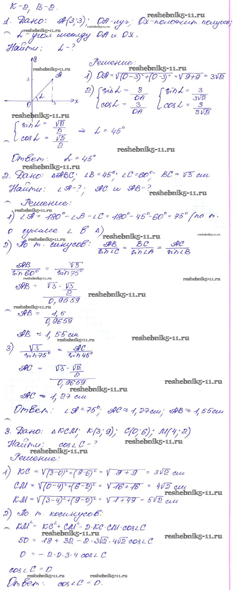 Готовая домашняя работа с ответами по Геометрии за 7, 8, 9 класс Иченская Самостоятельные и контрольные работы Просвещение 2017 ФГОС - КР-2. Варианты 2