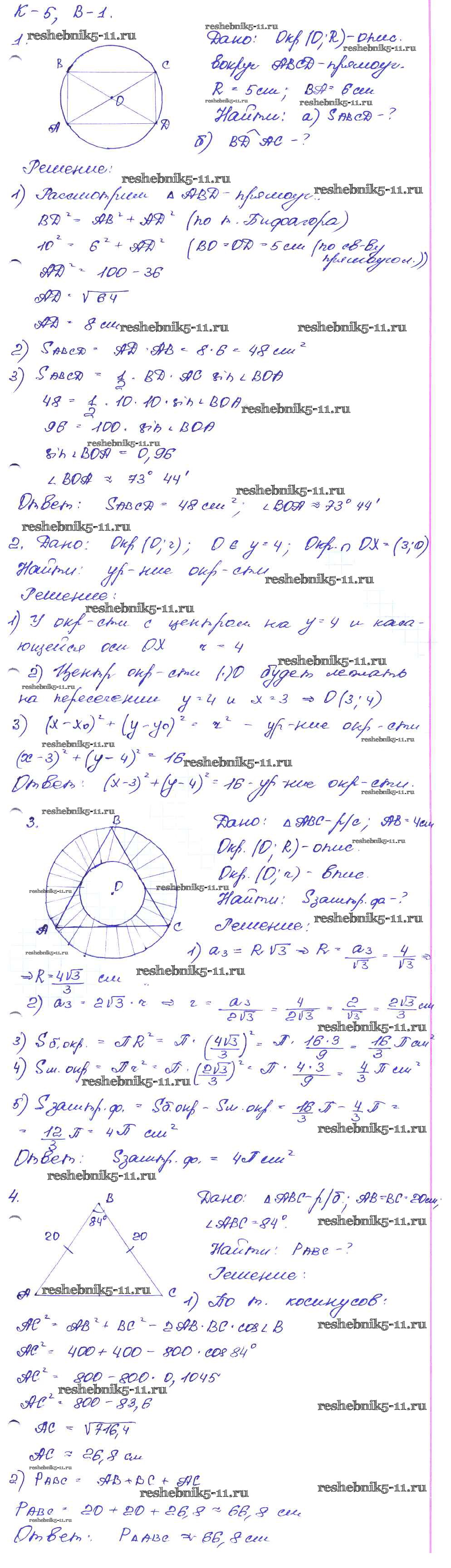 Готовая домашняя работа с ответами по Геометрии за 7, 8, 9 класс Иченская Самостоятельные и контрольные работы Просвещение 2017 ФГОС - КР-5. Варианты 1