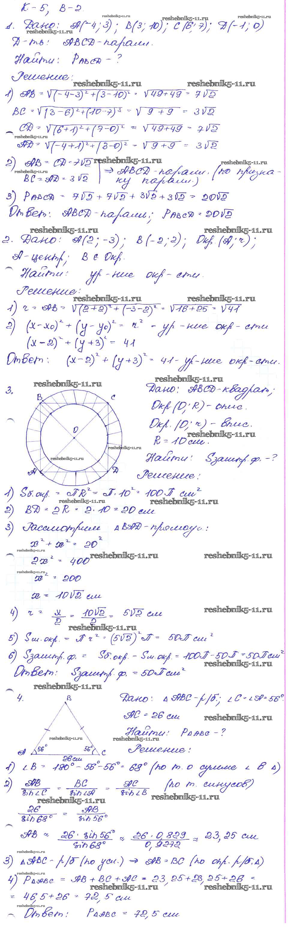 Готовая домашняя работа с ответами по Геометрии за 7, 8, 9 класс Иченская Самостоятельные и контрольные работы Просвещение 2017 ФГОС - КР-5. Варианты 2