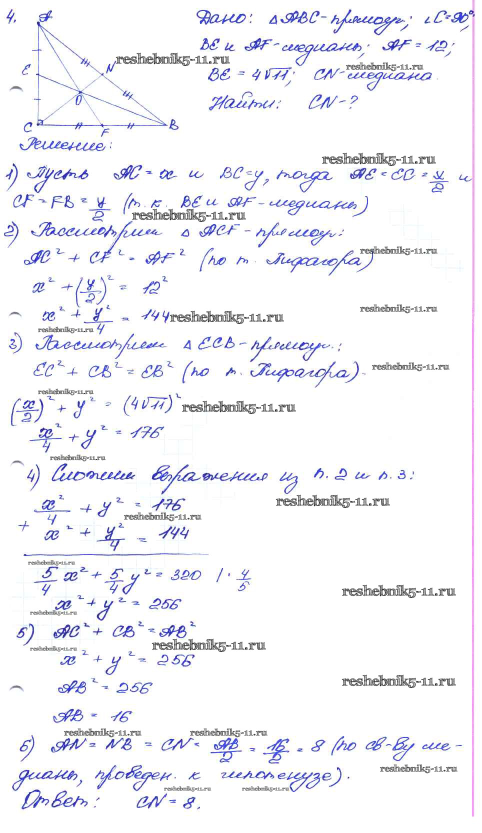 Готовая домашняя работа с ответами по Геометрии за 7, 8, 9 класс Иченская Самостоятельные и контрольные работы Просвещение 2017 ФГОС - Дополнительные задачи 4