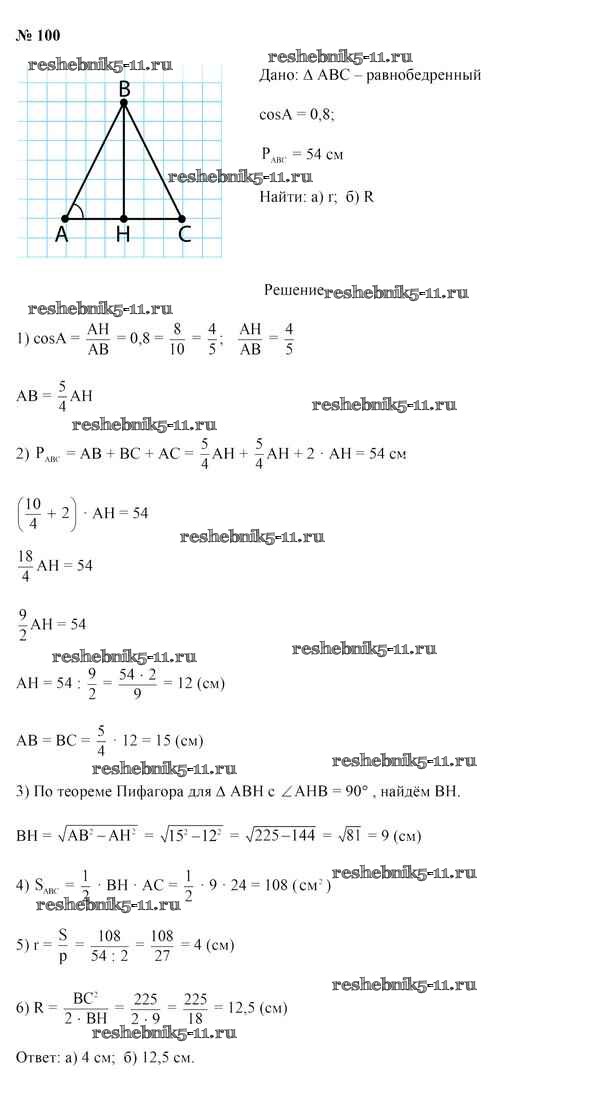 Готовая домашняя работа с ответами по Геометрии за 9 класс Казаков Учебник Народная асвета 2019 - Задачи 100