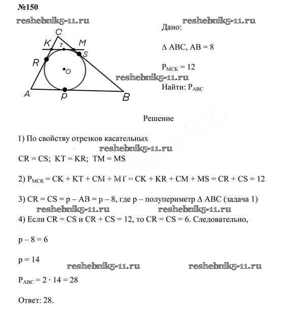 Готовая домашняя работа с ответами по Геометрии за 9 класс Казаков Учебник Народная асвета 2019 - Задачи 150