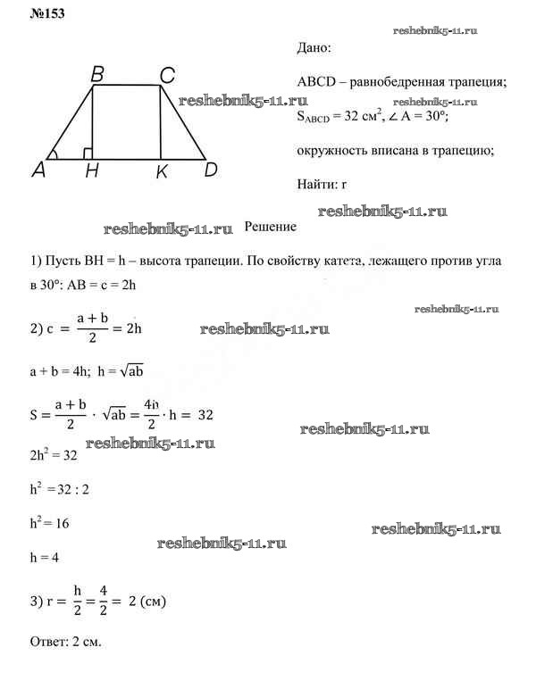 Готовая домашняя работа с ответами по Геометрии за 9 класс Казаков Учебник Народная асвета 2019 - Задачи 153