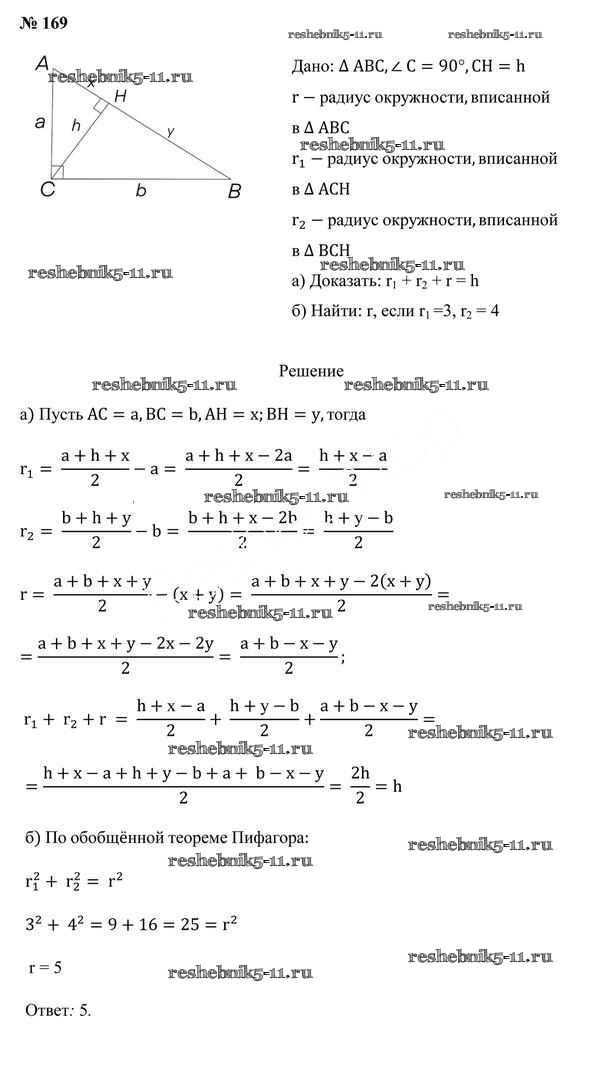 Готовая домашняя работа с ответами по Геометрии за 9 класс Казаков Учебник Народная асвета 2019 - Задачи 169