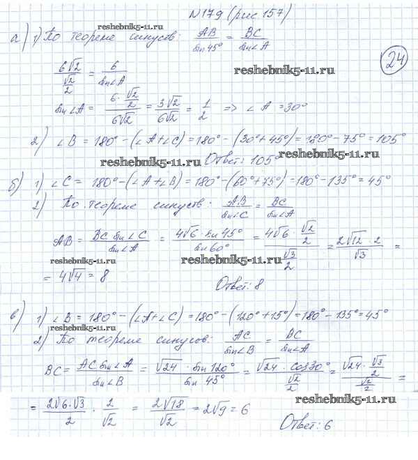Готовая домашняя работа с ответами по Геометрии за 9 класс Казаков Учебник Народная асвета 2019 - Задачи 179