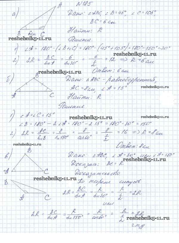 Готовая домашняя работа с ответами по Геометрии за 9 класс Казаков Учебник Народная асвета 2019 - Задачи 185