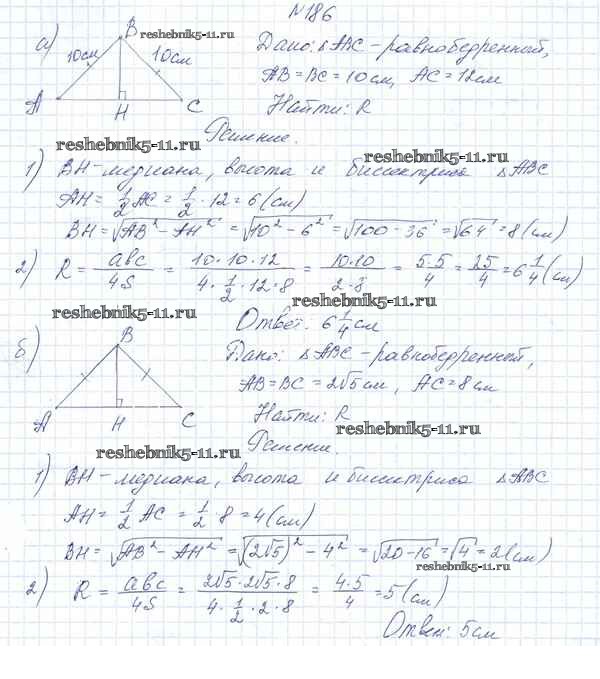 Готовая домашняя работа с ответами по Геометрии за 9 класс Казаков Учебник Народная асвета 2019 - Задачи 186