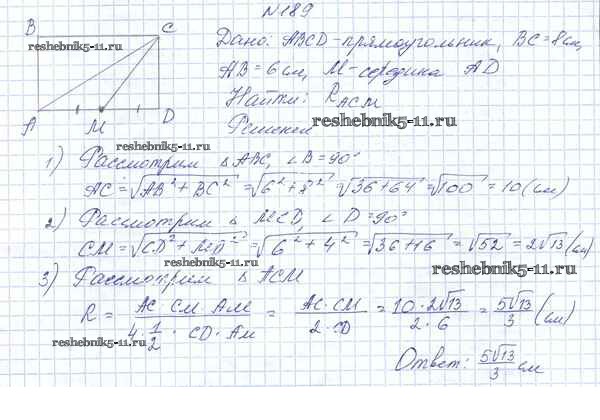 Готовая домашняя работа с ответами по Геометрии за 9 класс Казаков Учебник Народная асвета 2019 - Задачи 189