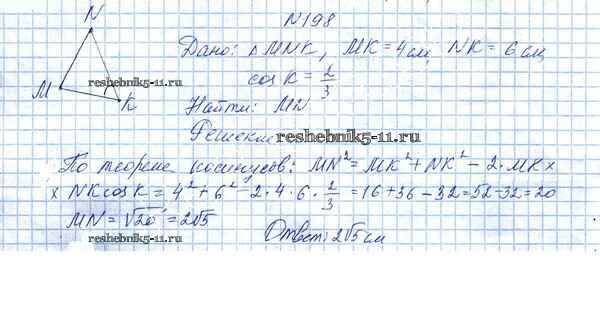 Готовая домашняя работа с ответами по Геометрии за 9 класс Казаков Учебник Народная асвета 2019 - Задачи 198