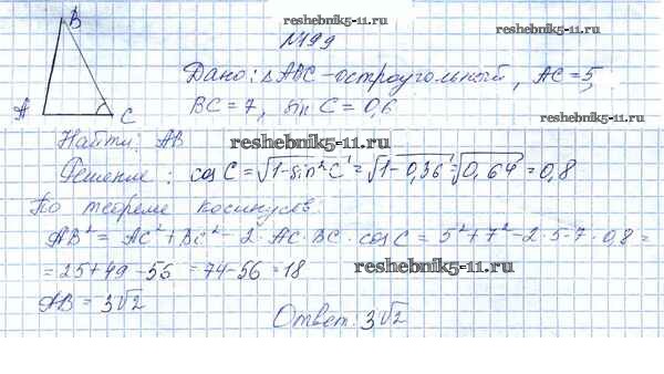Готовая домашняя работа с ответами по Геометрии за 9 класс Казаков Учебник Народная асвета 2019 - Задачи 199