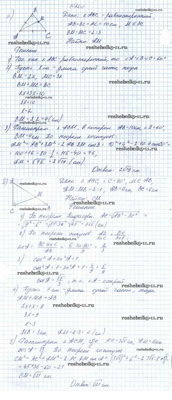 Готовая домашняя работа с ответами по Геометрии за 9 класс Казаков Учебник Народная асвета 2019 - Задачи 200