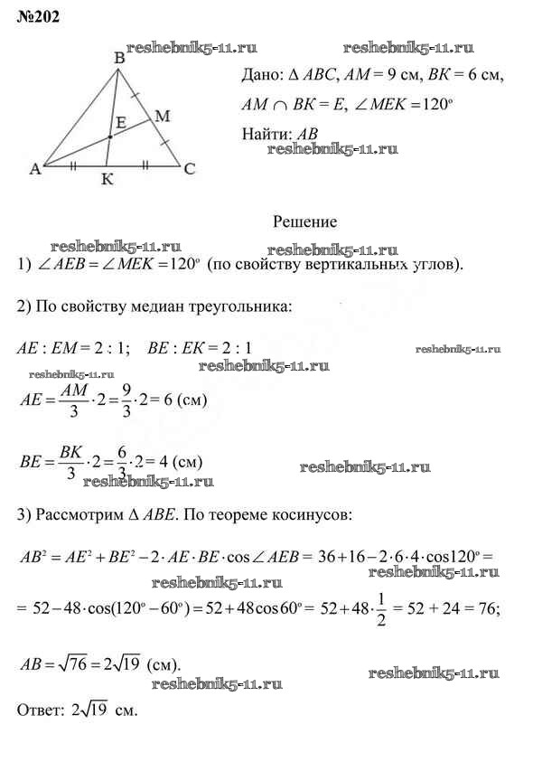 Готовая домашняя работа с ответами по Геометрии за 9 класс Казаков Учебник Народная асвета 2019 - Задачи 202