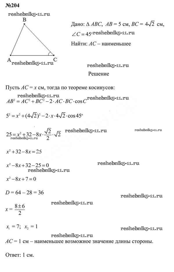 Готовая домашняя работа с ответами по Геометрии за 9 класс Казаков Учебник Народная асвета 2019 - Задачи 204