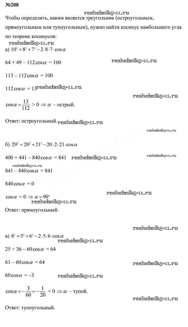 Готовая домашняя работа с ответами по Геометрии за 9 класс Казаков Учебник Народная асвета 2019 - Задачи 208