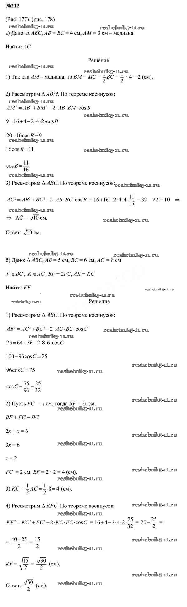 Готовая домашняя работа с ответами по Геометрии за 9 класс Казаков Учебник Народная асвета 2019 - Задачи 212