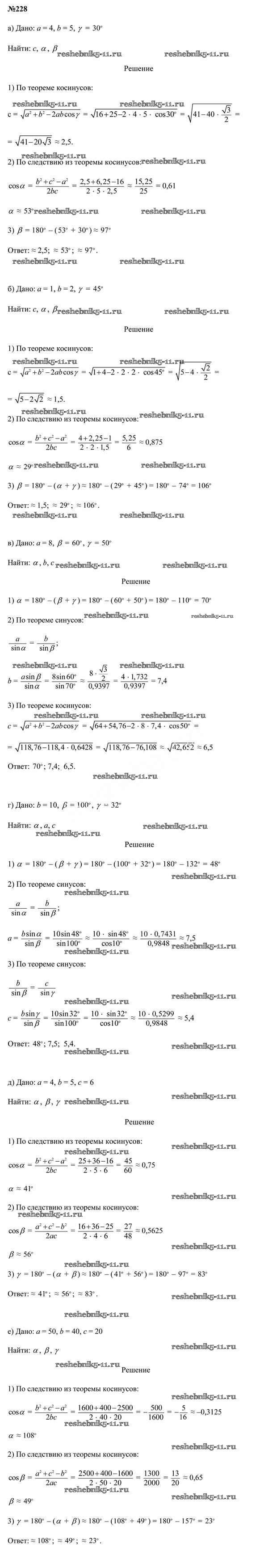 Готовая домашняя работа с ответами по Геометрии за 9 класс Казаков Учебник Народная асвета 2019 - Задачи 228
