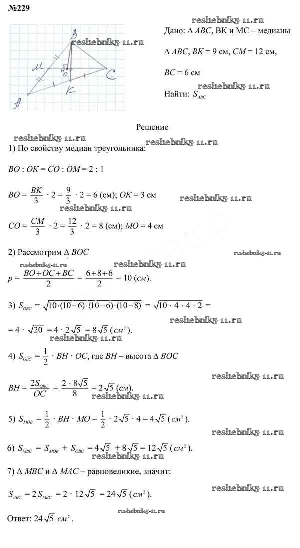 Готовая домашняя работа с ответами по Геометрии за 9 класс Казаков Учебник Народная асвета 2019 - Задачи 229