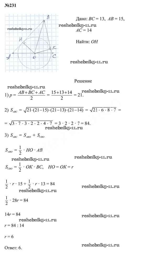 Готовая домашняя работа с ответами по Геометрии за 9 класс Казаков Учебник Народная асвета 2019 - Задачи 231