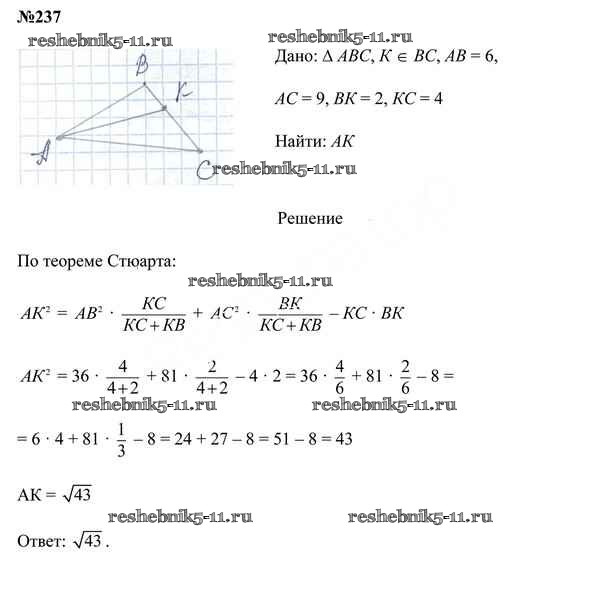 Готовая домашняя работа с ответами по Геометрии за 9 класс Казаков Учебник Народная асвета 2019 - Задачи 237