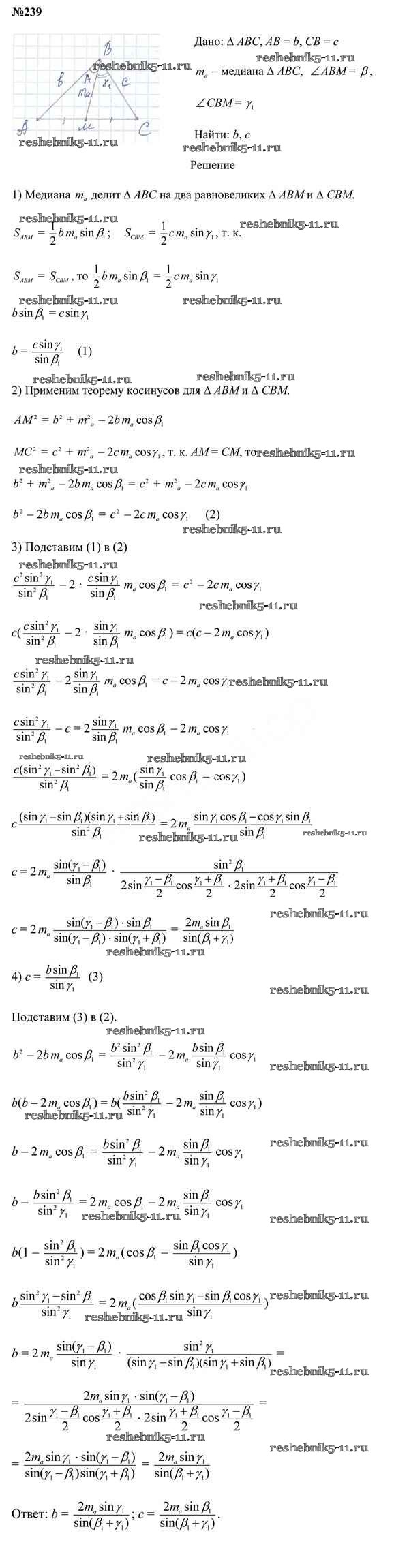 Готовая домашняя работа с ответами по Геометрии за 9 класс Казаков Учебник Народная асвета 2019 - Задачи 239