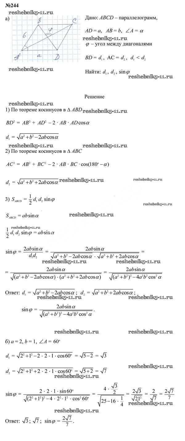 Готовая домашняя работа с ответами по Геометрии за 9 класс Казаков Учебник Народная асвета 2019 - Задачи 244