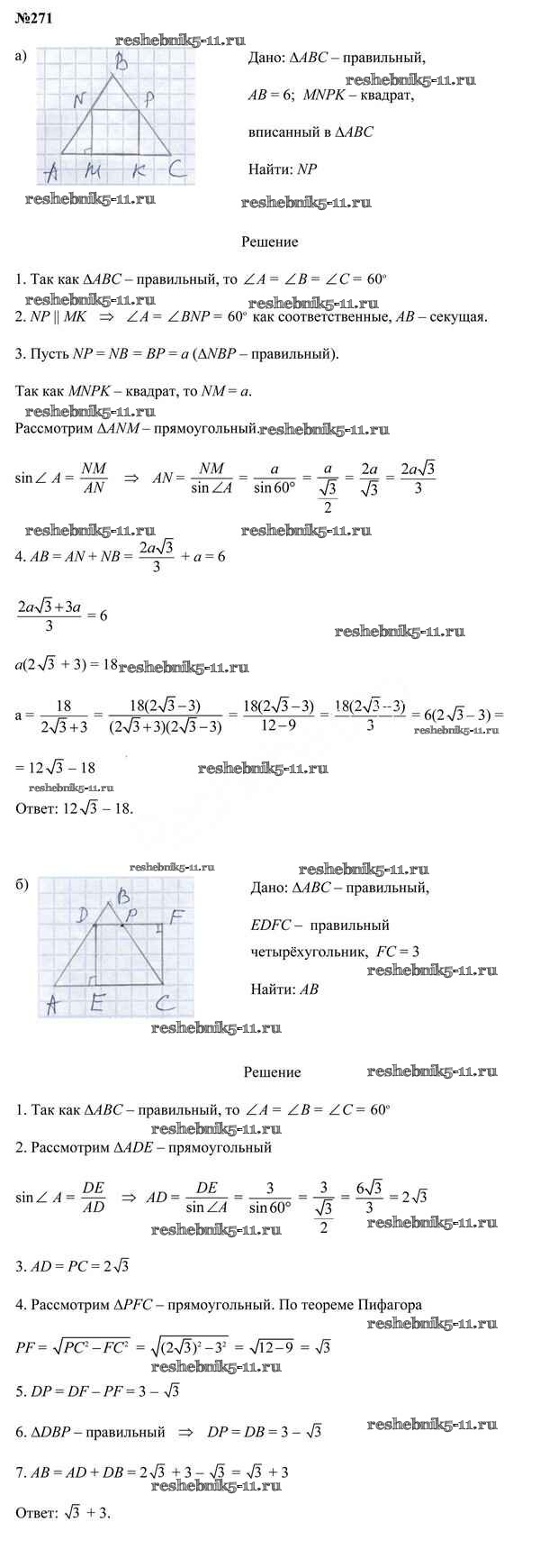 Готовая домашняя работа с ответами по Геометрии за 9 класс Казаков Учебник Народная асвета 2019 - Задачи 271