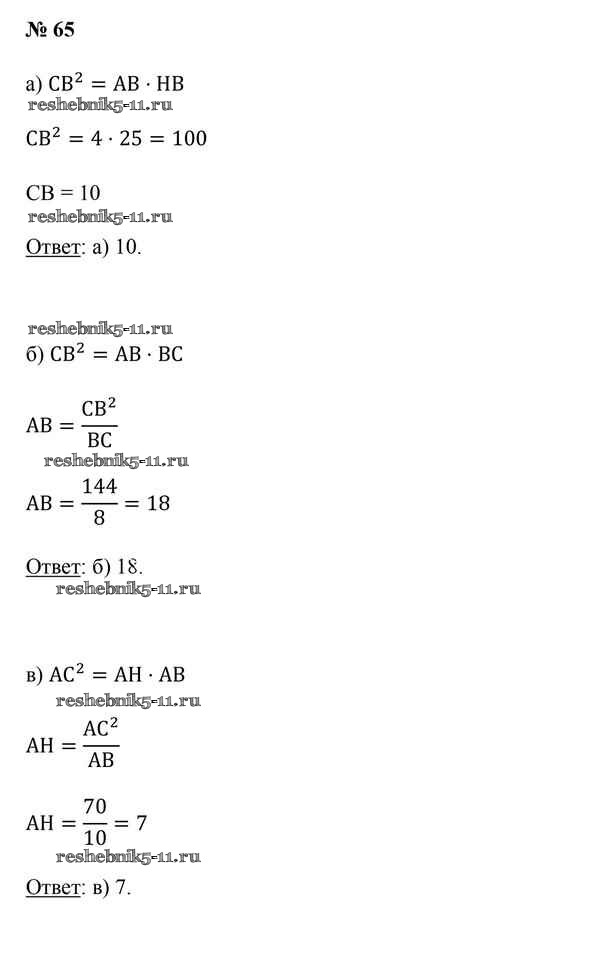 Готовая домашняя работа с ответами по Геометрии за 9 класс Казаков Учебник Народная асвета 2019 - Задачи 65