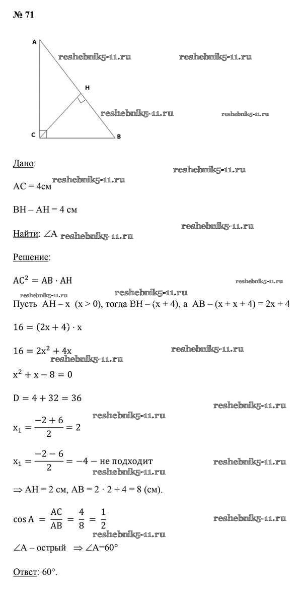 Готовая домашняя работа с ответами по Геометрии за 9 класс Казаков Учебник Народная асвета 2019 - Задачи 71