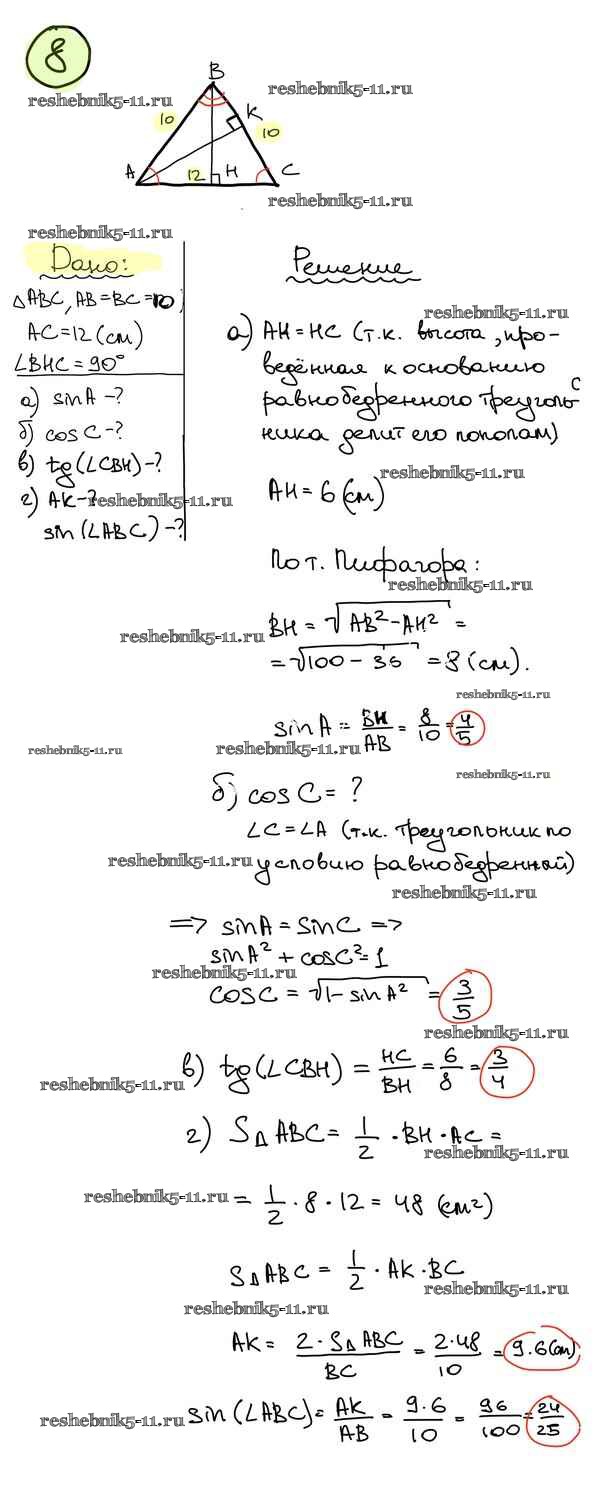 Готовая домашняя работа с ответами по Геометрии за 9 класс Казаков Учебник Народная асвета 2019 - Задачи 8