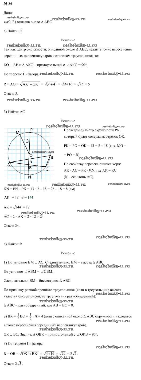 Готовая домашняя работа с ответами по Геометрии за 9 класс Казаков Учебник Народная асвета 2019 - Задачи 86