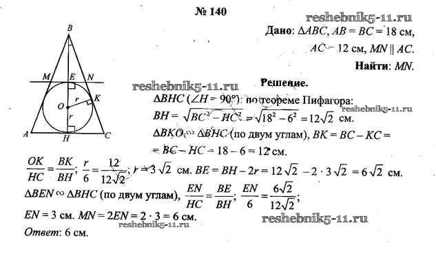Готовая домашняя работа с ответами по Геометрии за 9 класс Шлыков Учебник Народная асвета 2012 - Задачи 140