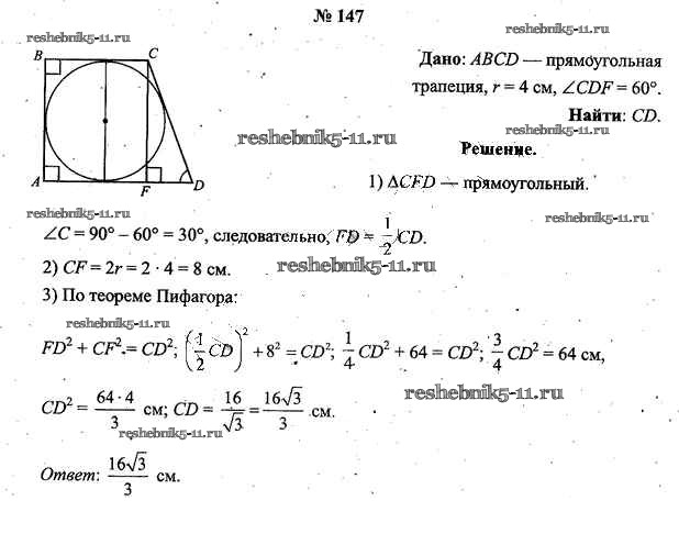 Готовая домашняя работа с ответами по Геометрии за 9 класс Шлыков Учебник Народная асвета 2012 - Задачи 147
