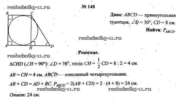 Готовая домашняя работа с ответами по Геометрии за 9 класс Шлыков Учебник Народная асвета 2012 - Задачи 148