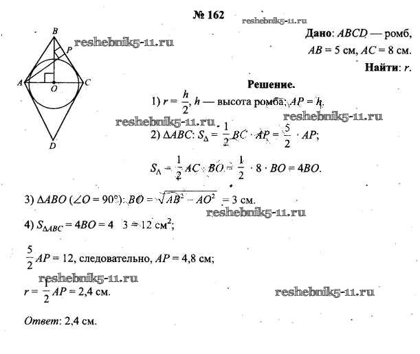 Готовая домашняя работа с ответами по Геометрии за 9 класс Шлыков Учебник Народная асвета 2012 - Задачи 162