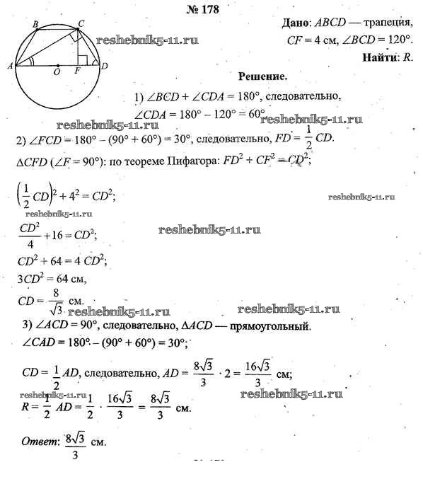 Готовая домашняя работа с ответами по Геометрии за 9 класс Шлыков Учебник Народная асвета 2012 - Задачи 178